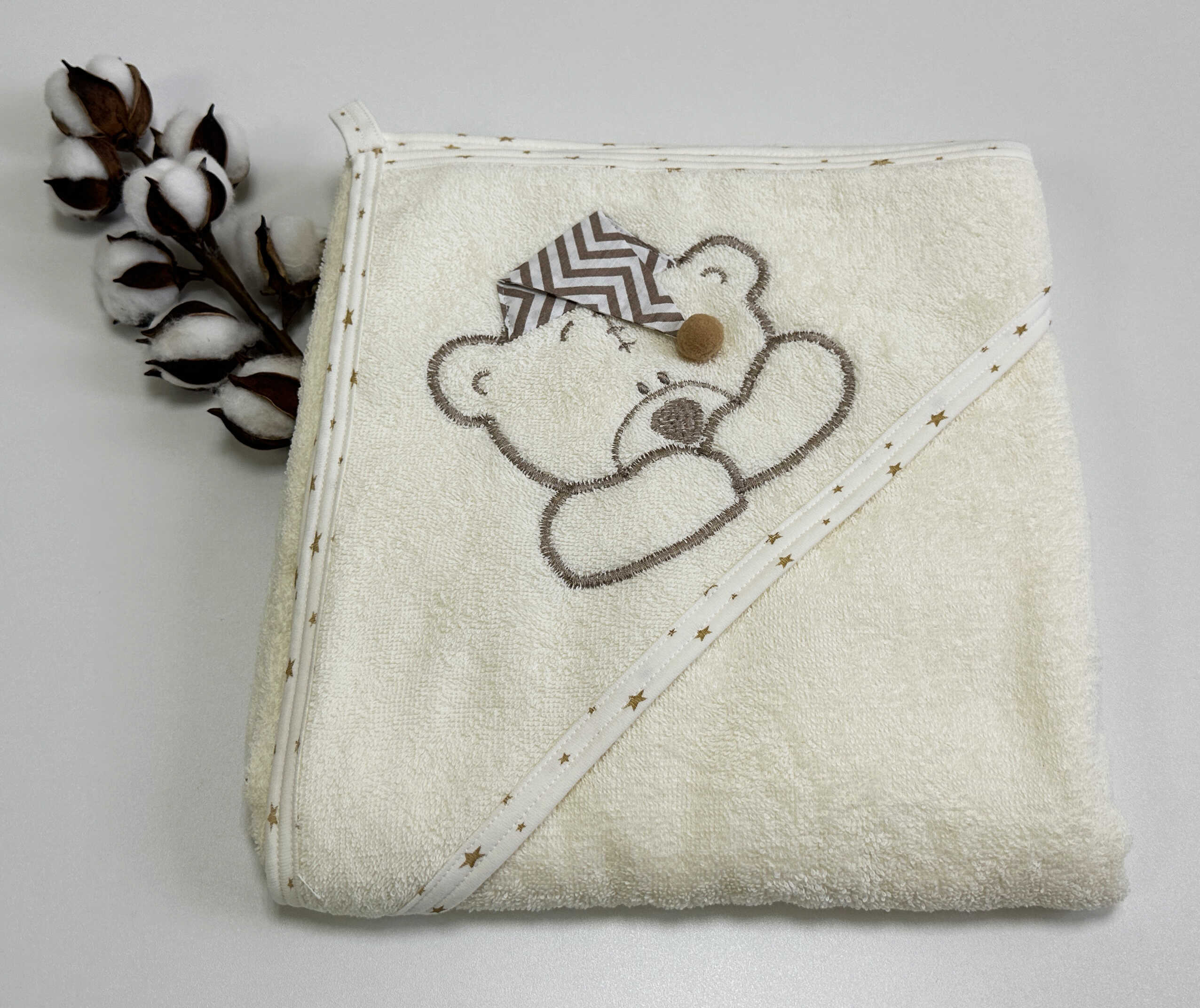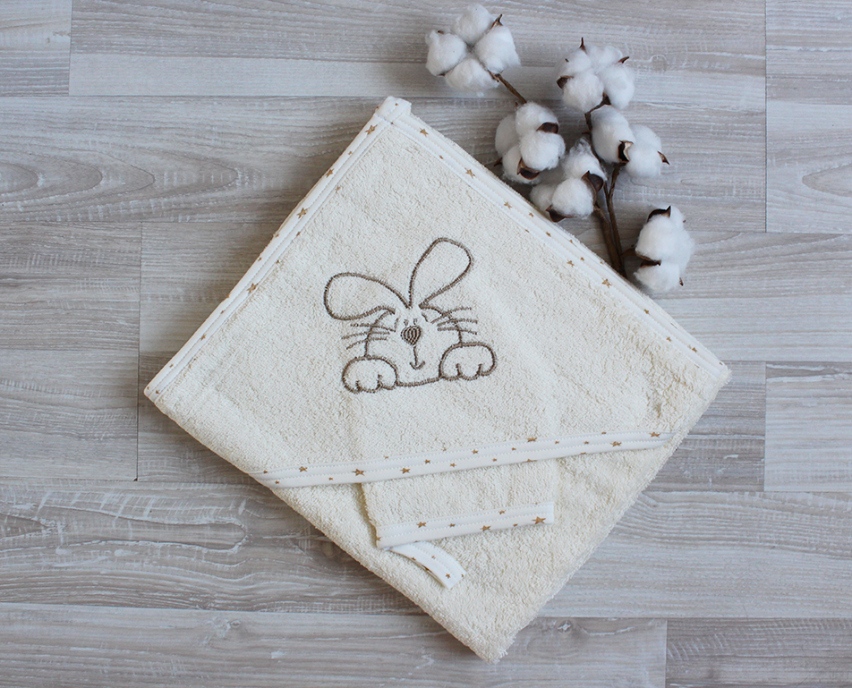 Полотенце с капюшоном и рукавичкой Вышивка (молочный)
