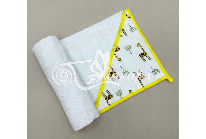 Для производства полотенце уголок мы используем плотную турецкую махру, которая не осыпается и надолго сохраняет мягкость, а для отделки только оригинальные принты собственного дизайна и контрастный кант по периметру.