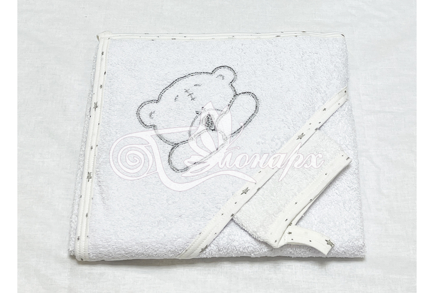 Полотенце с капюшоном и рукавичкой Вышивка (белый)