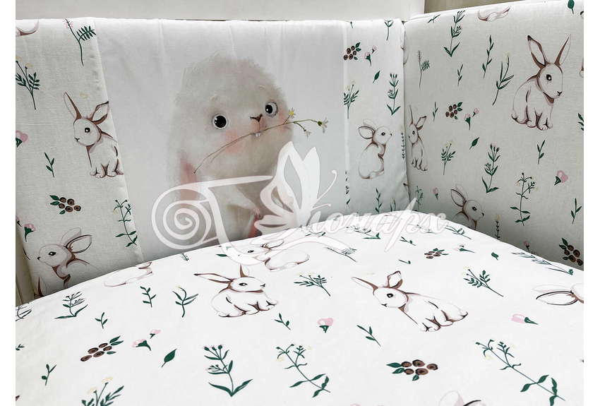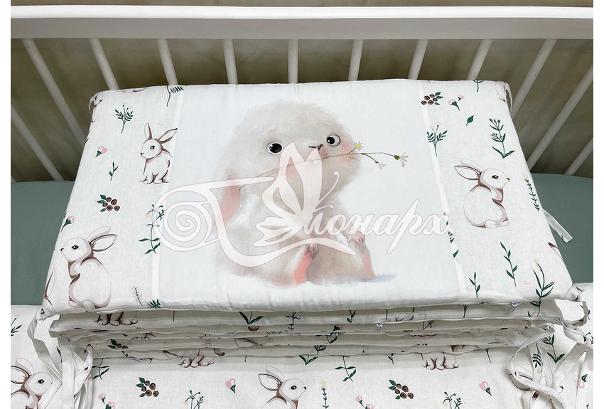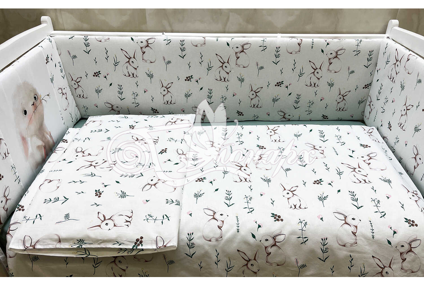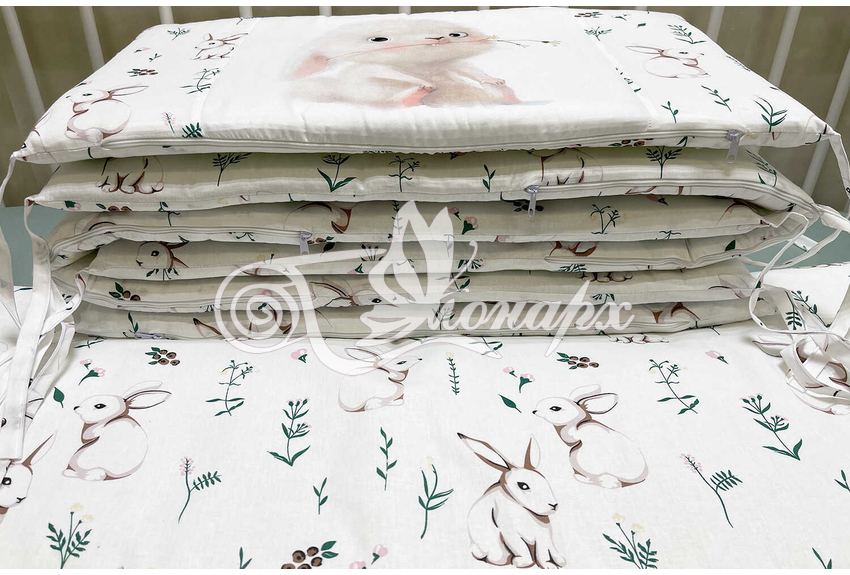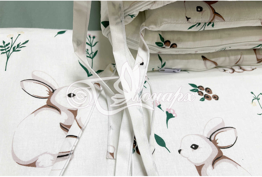 Бортики СО СЪЕМНЫМИ ЧЕХЛАМИ в кроватку: защитят Вашего малыша от ушибов, сквозняков, солнечных лучей и не дадут малышу запутаться в прутьях кроватки. - Простыня на резинке 60х120 см (подходит для стандартной кроватки)