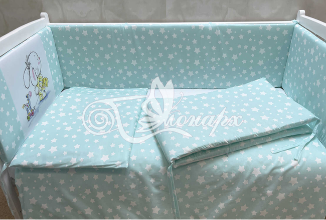 Бортики СО СЪЕМНЫМИ ЧЕХЛАМИ в кроватку: защитят Вашего малыша от ушибов, сквозняков, солнечных лучей и не дадут малышу запутаться в прутьях кроватки. - Простыня на резинке 60х120 см (подходит для стандартной кроватки)