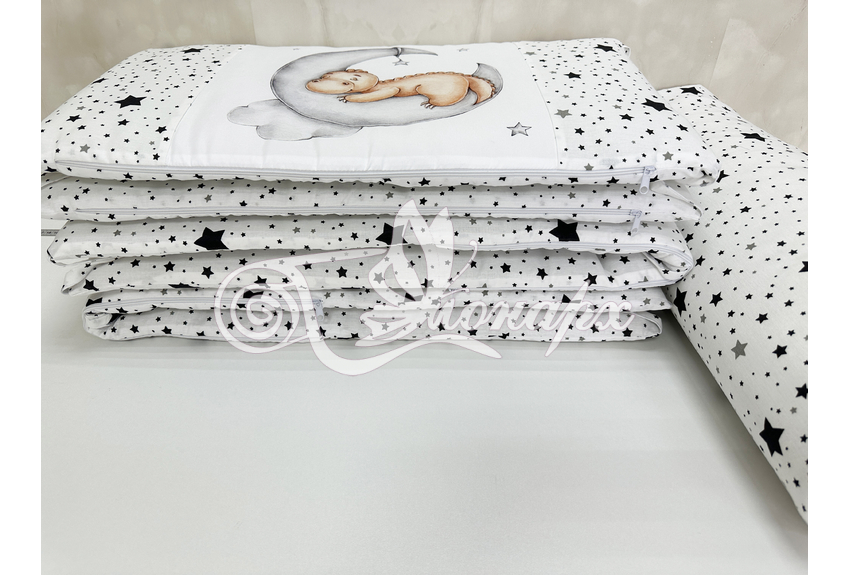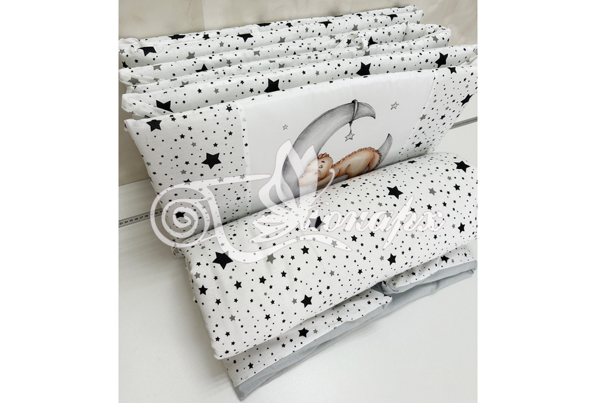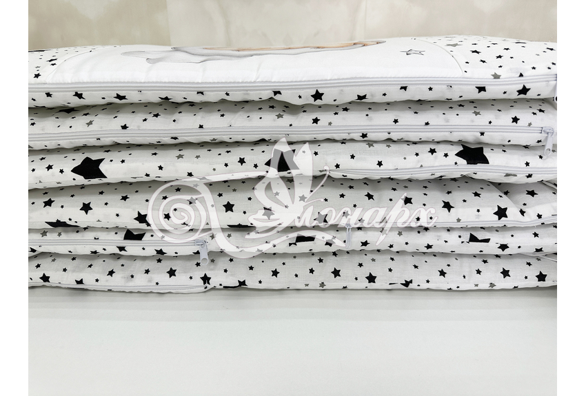 Бортики СО СЪЕМНЫМИ ЧЕХЛАМИ в кроватку: защитят Вашего малыша от ушибов, сквозняков, солнечных лучей и не дадут малышу запутаться в прутьях кроватки. - Простыня на резинке 60х120 см (подходит для стандартной кроватки)