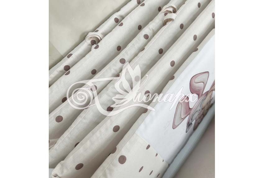 Бортики СО СЪЕМНЫМИ ЧЕХЛАМИ в кроватку: защитят Вашего малыша от ушибов, сквозняков, солнечных лучей и не дадут малышу запутаться в прутьях кроватки. - Простыня на резинке 60х120 см (подходит для стандартной кроватки)