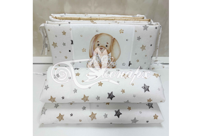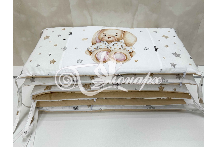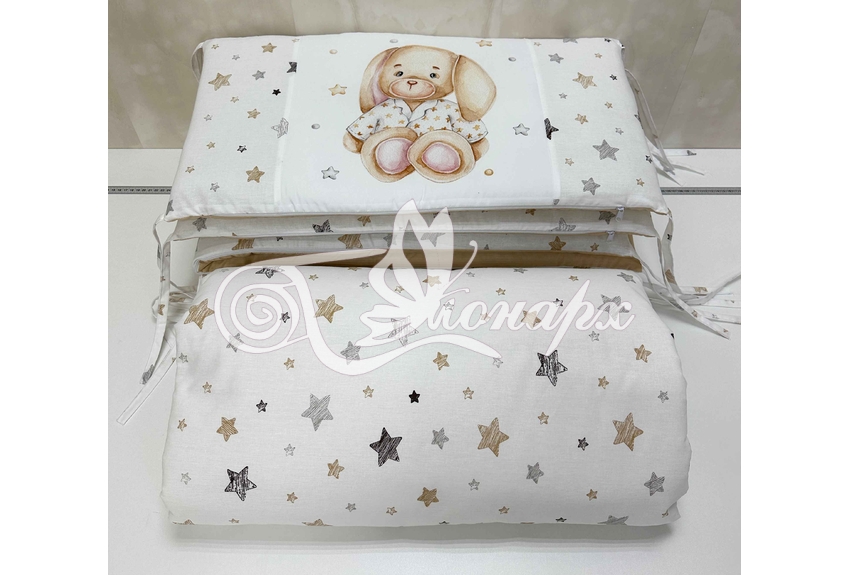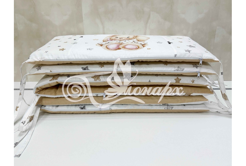 Бортики СО СЪЕМНЫМИ ЧЕХЛАМИ в кроватку: защитят Вашего малыша от ушибов, сквозняков, солнечных лучей и не дадут малышу запутаться в прутьях кроватки. - Простыня на резинке 60х120 см (подходит для стандартной кроватки)