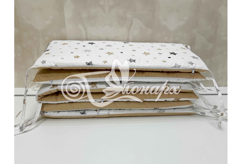 Бортики СО СЪЕМНЫМИ ЧЕХЛАМИ в кроватку: защитят Вашего малыша от ушибов, сквозняков, солнечных лучей и не дадут малышу запутаться в прутьях кроватки. - Простыня на резинке 60х120 см (подходит для стандартной кроватки)