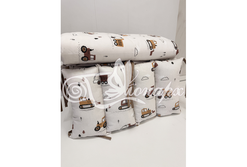 - Бортик-заборчик стеганый плотно забит синтепухом (на замочках): - 2 шт. 60х34 см / - 2 шт. 120х34 см.