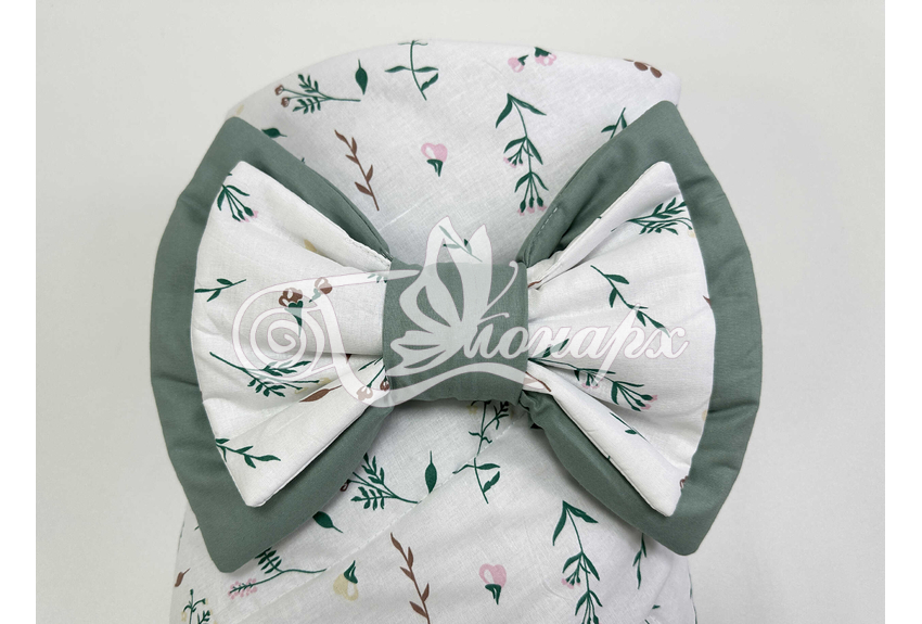 Конверт фиксируется поясом на резинке с бантом.