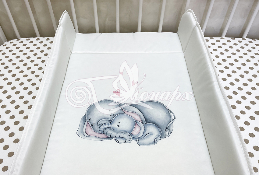 Бортики сгибающиеся, выполняют защитную функцию. Изделие предназначено для малышей с рождения до годика, выполнено из плащевой ткани, наполнитель волтекс.