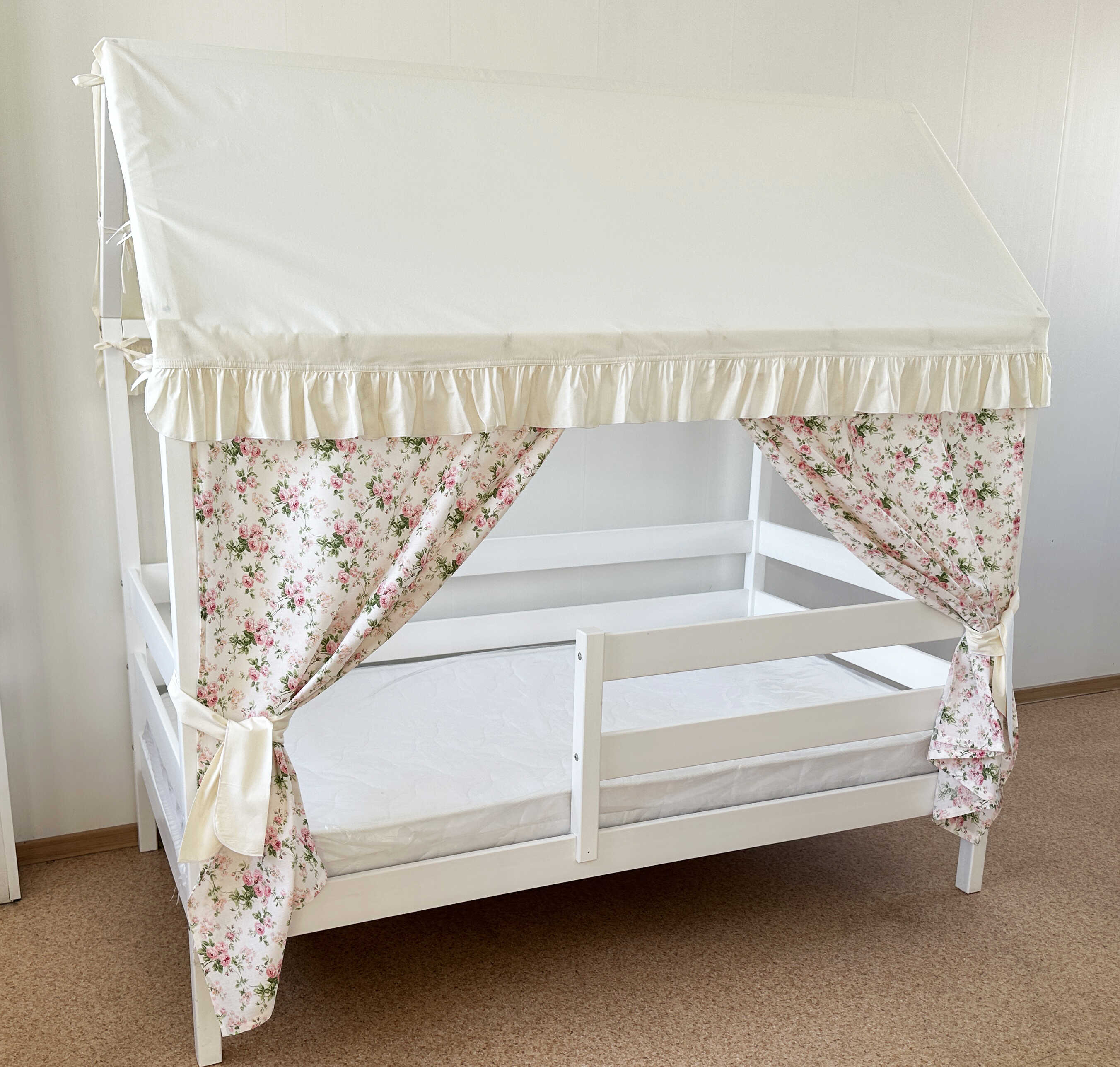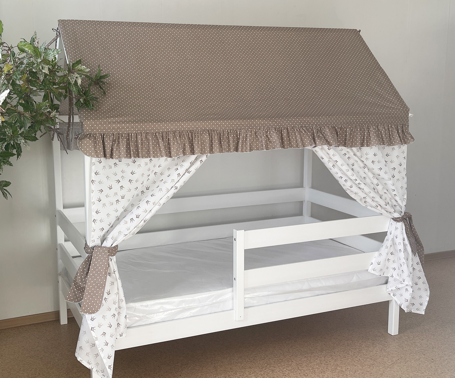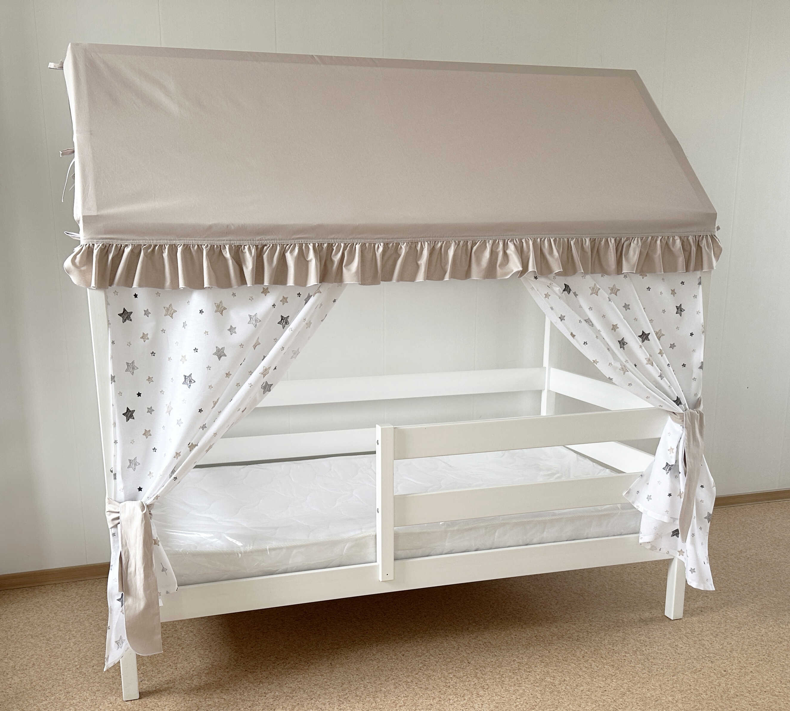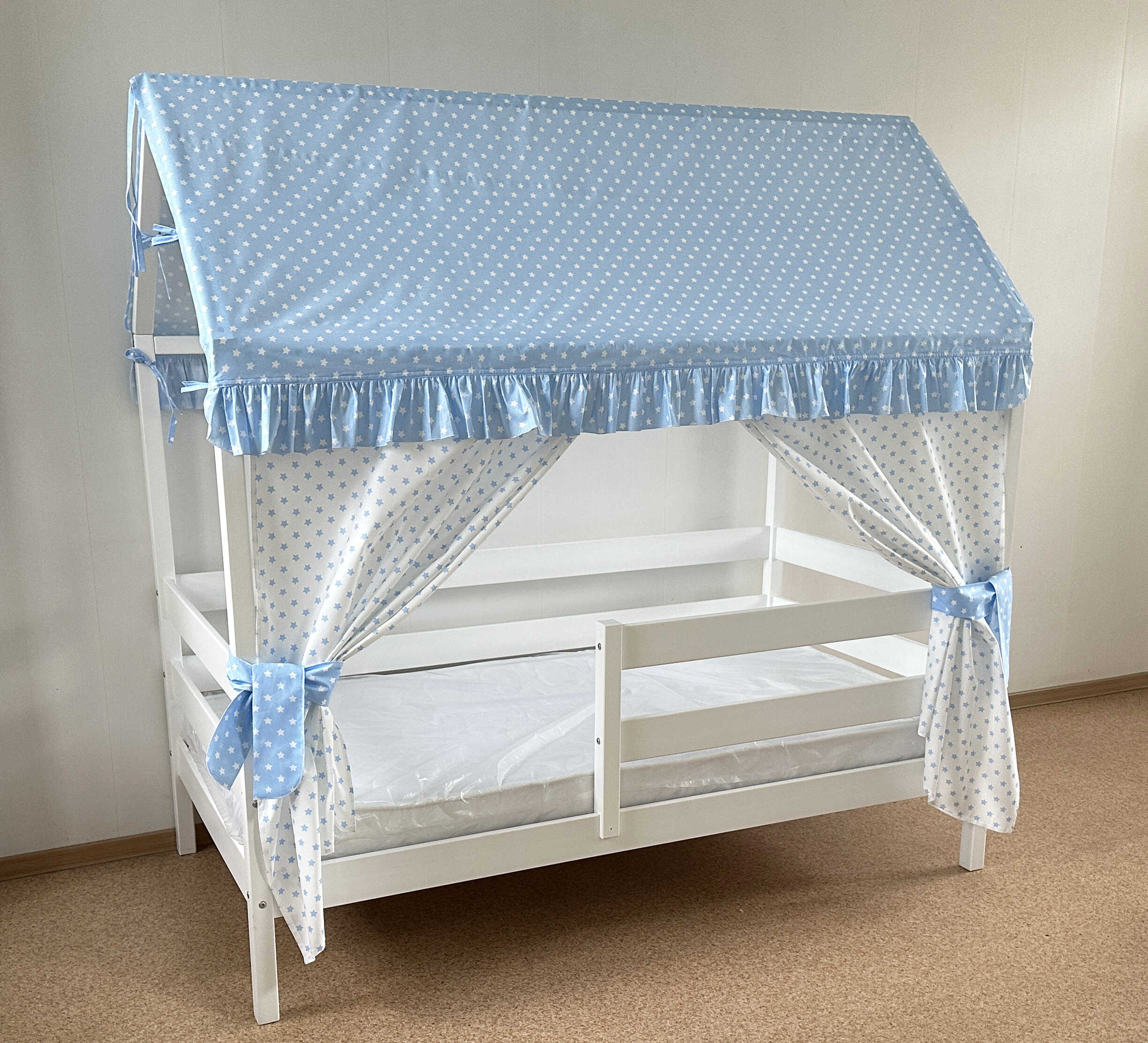 Крыша и шторы для кроватки домика ТД-1