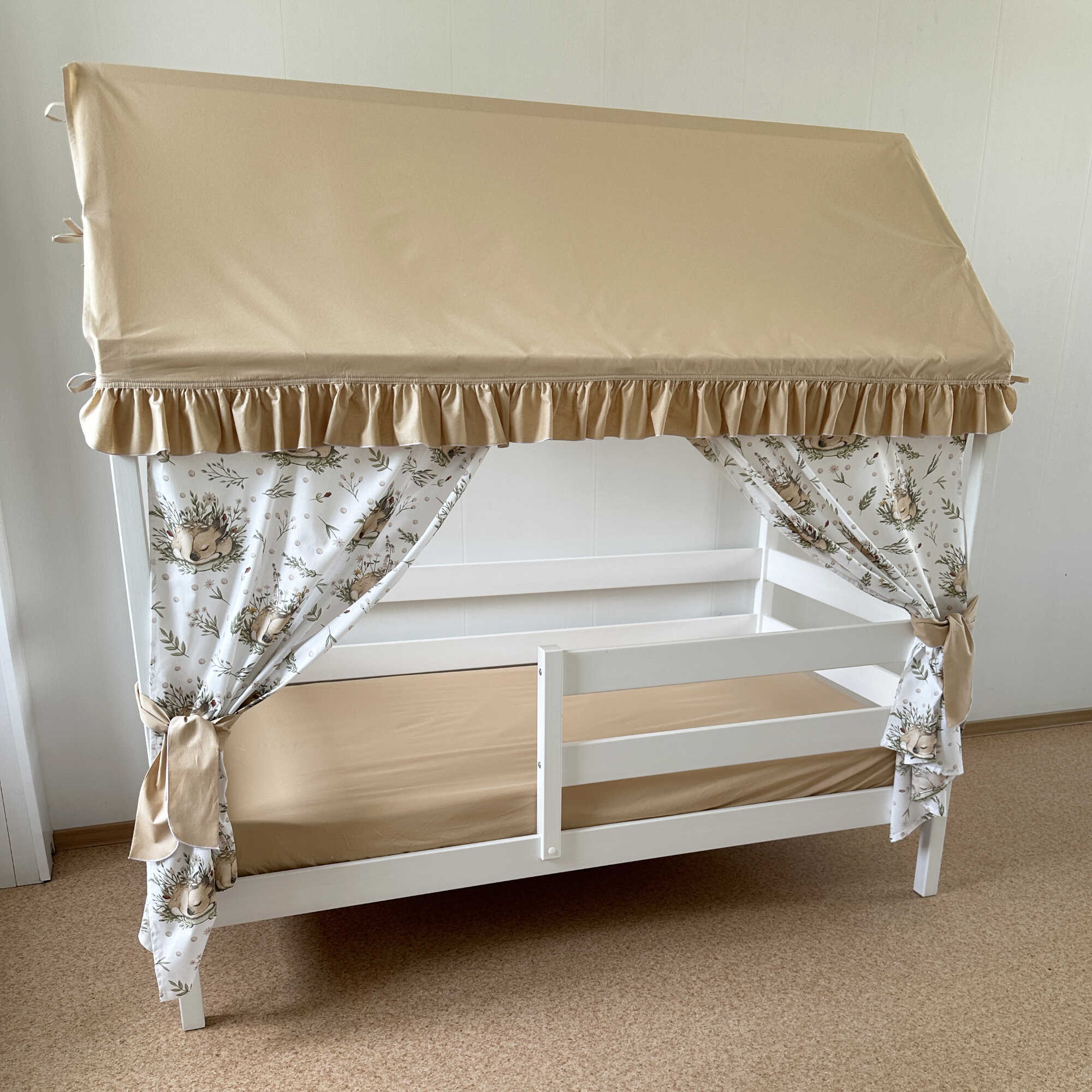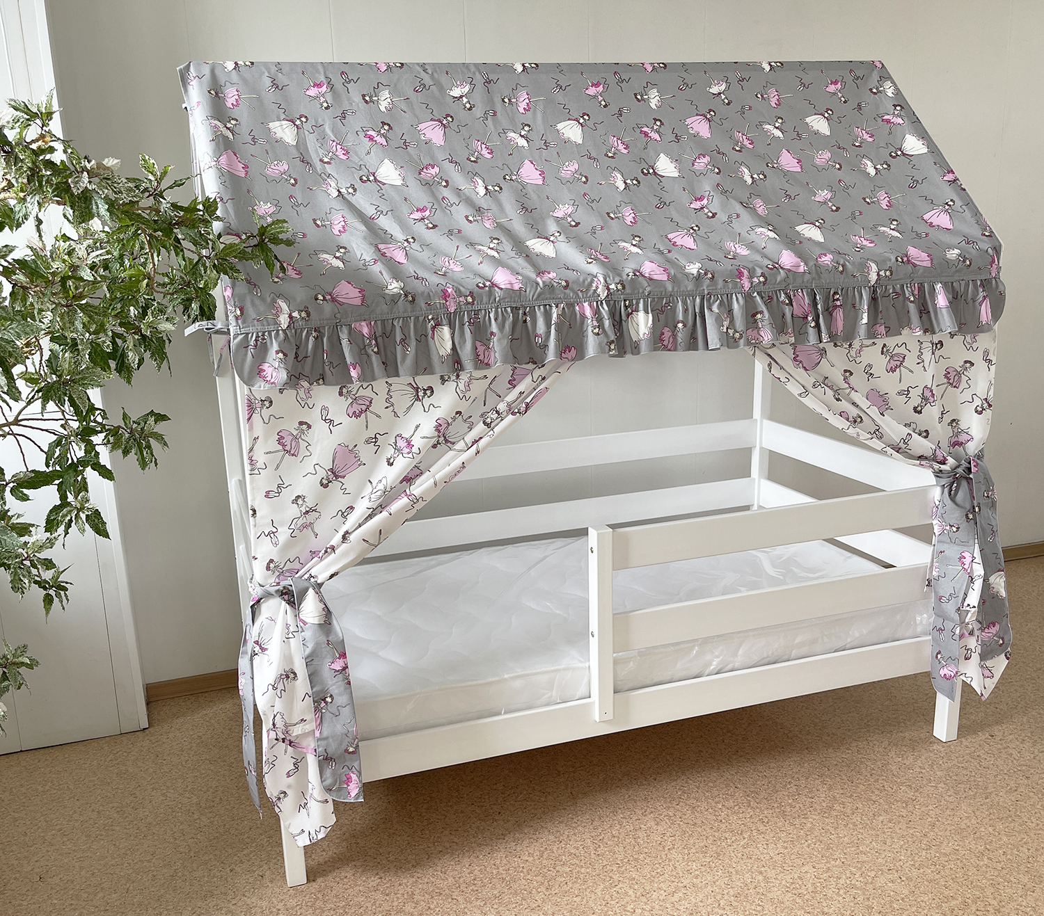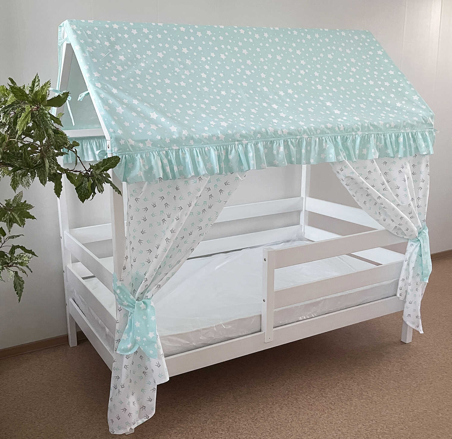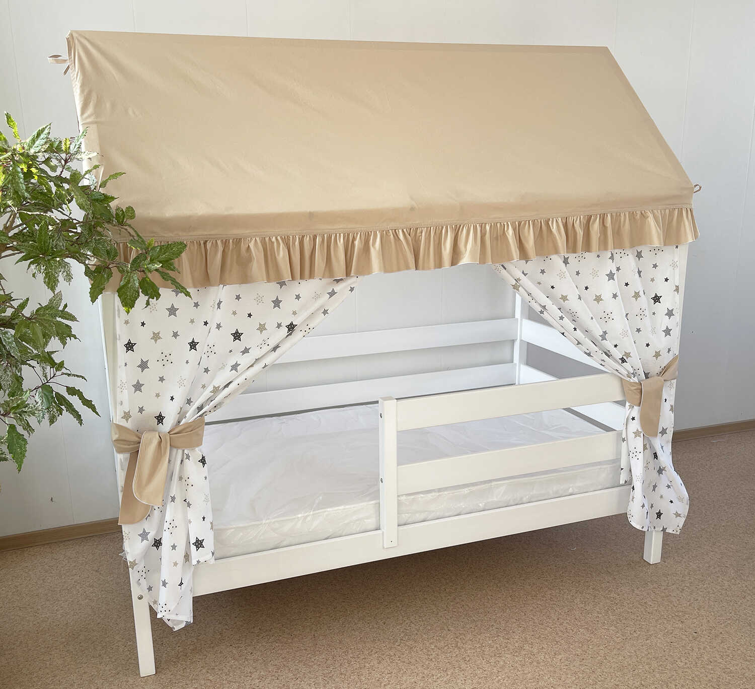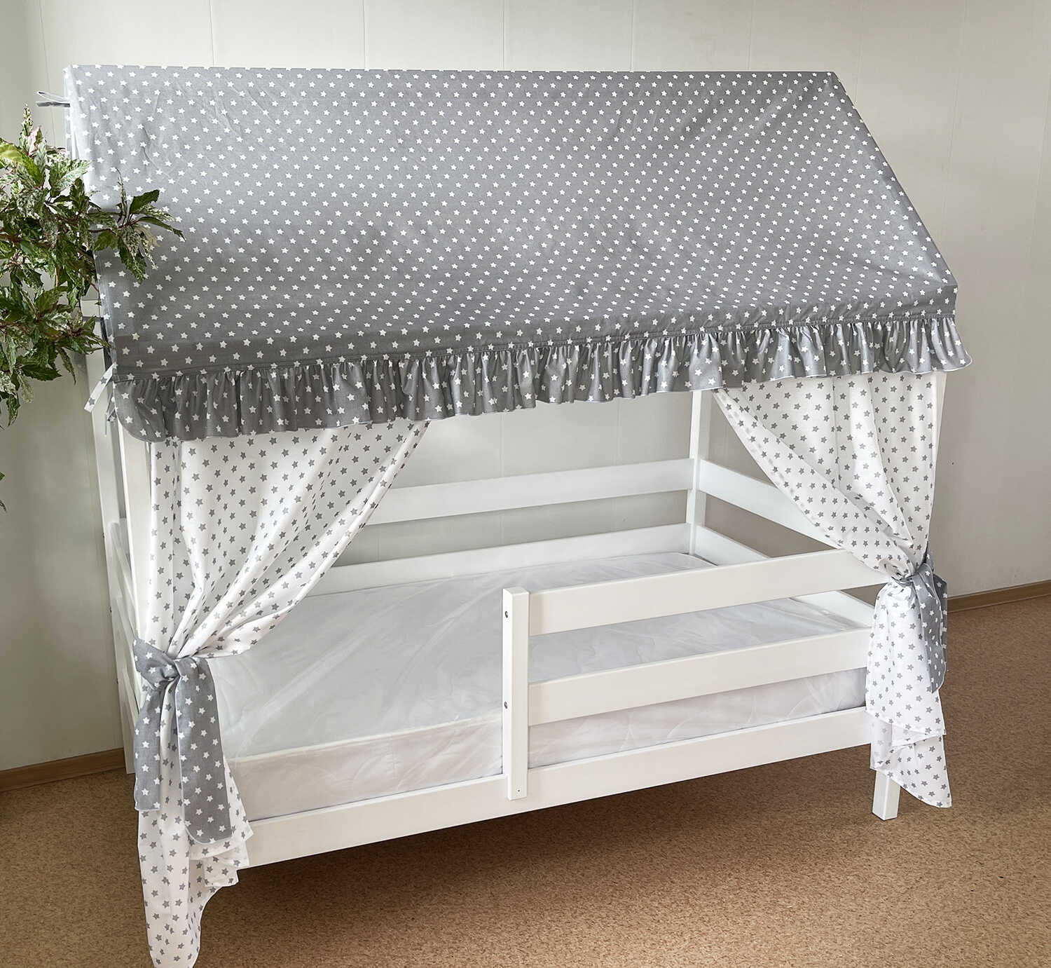 Крыша и шторы для кроватки домика ТД-1