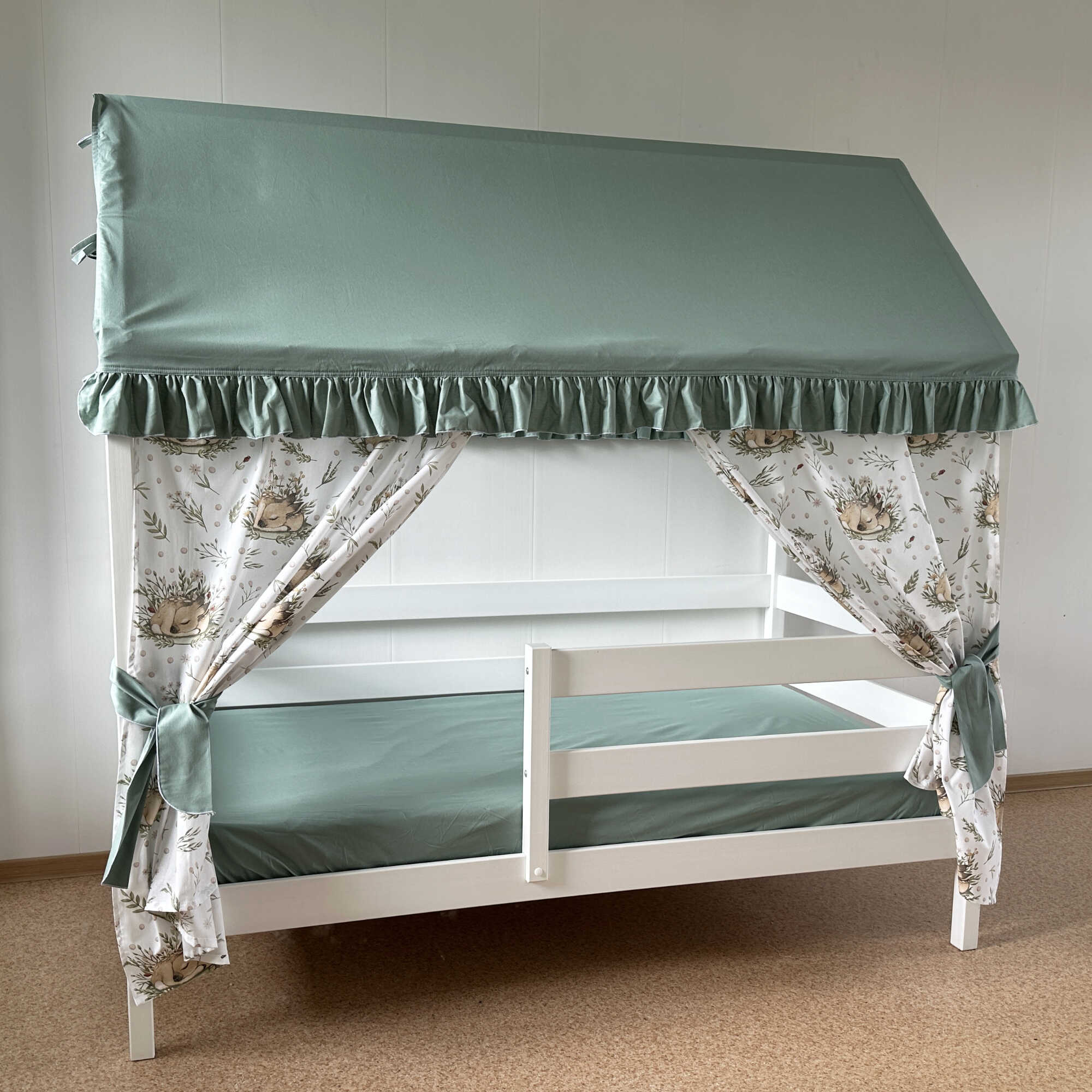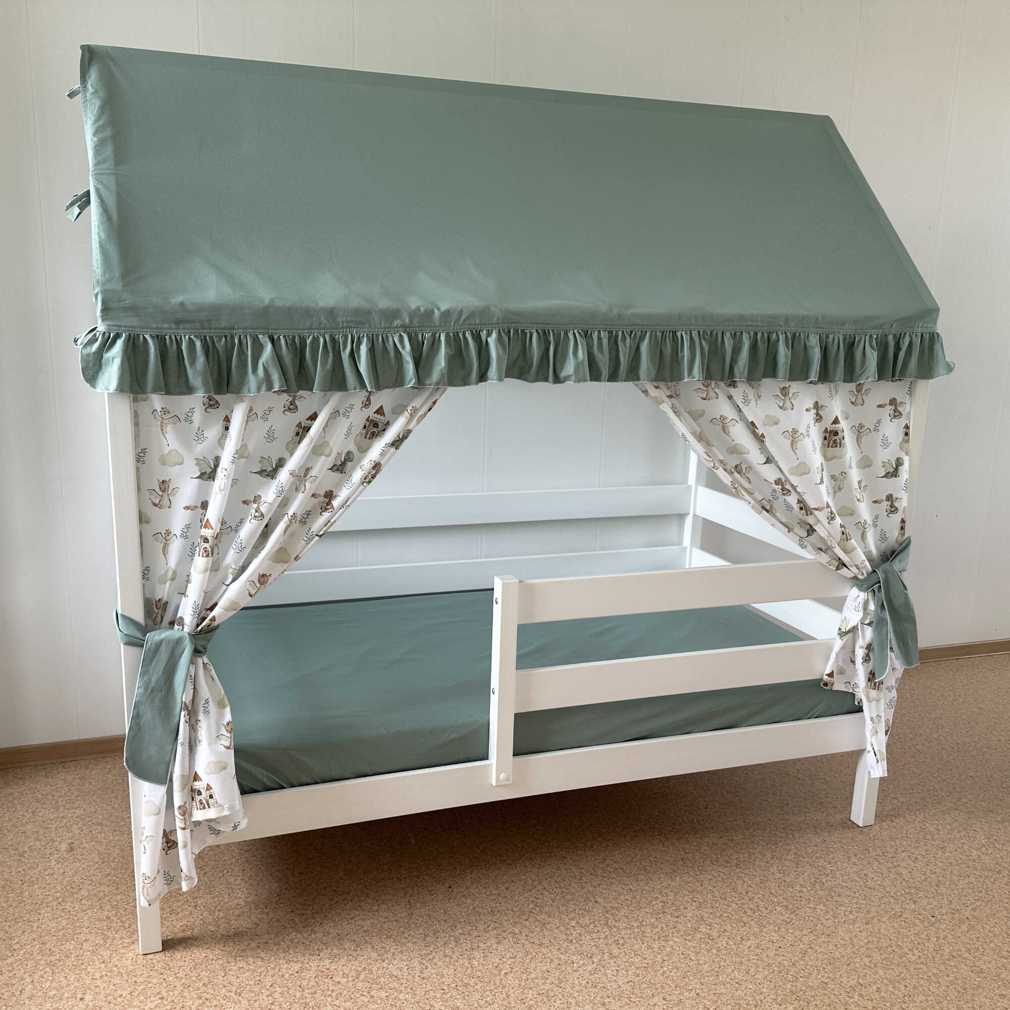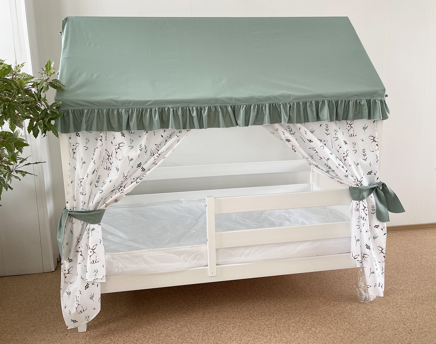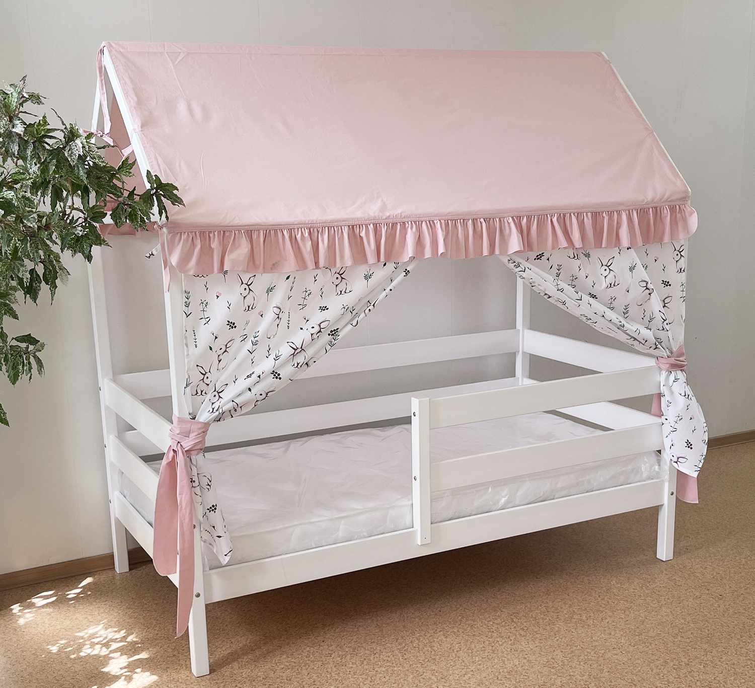 Крыша и шторы для кроватки домика ТД-1