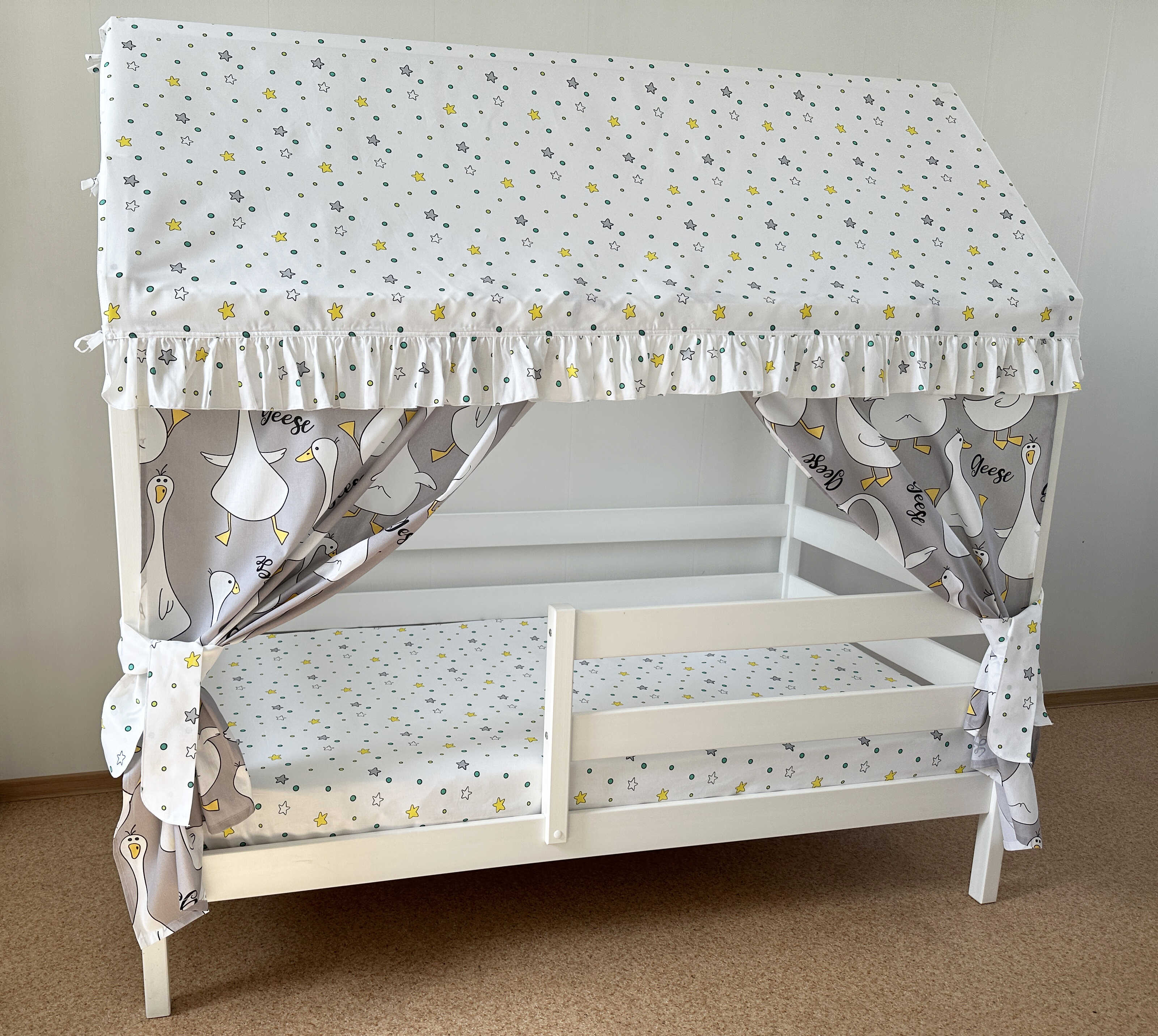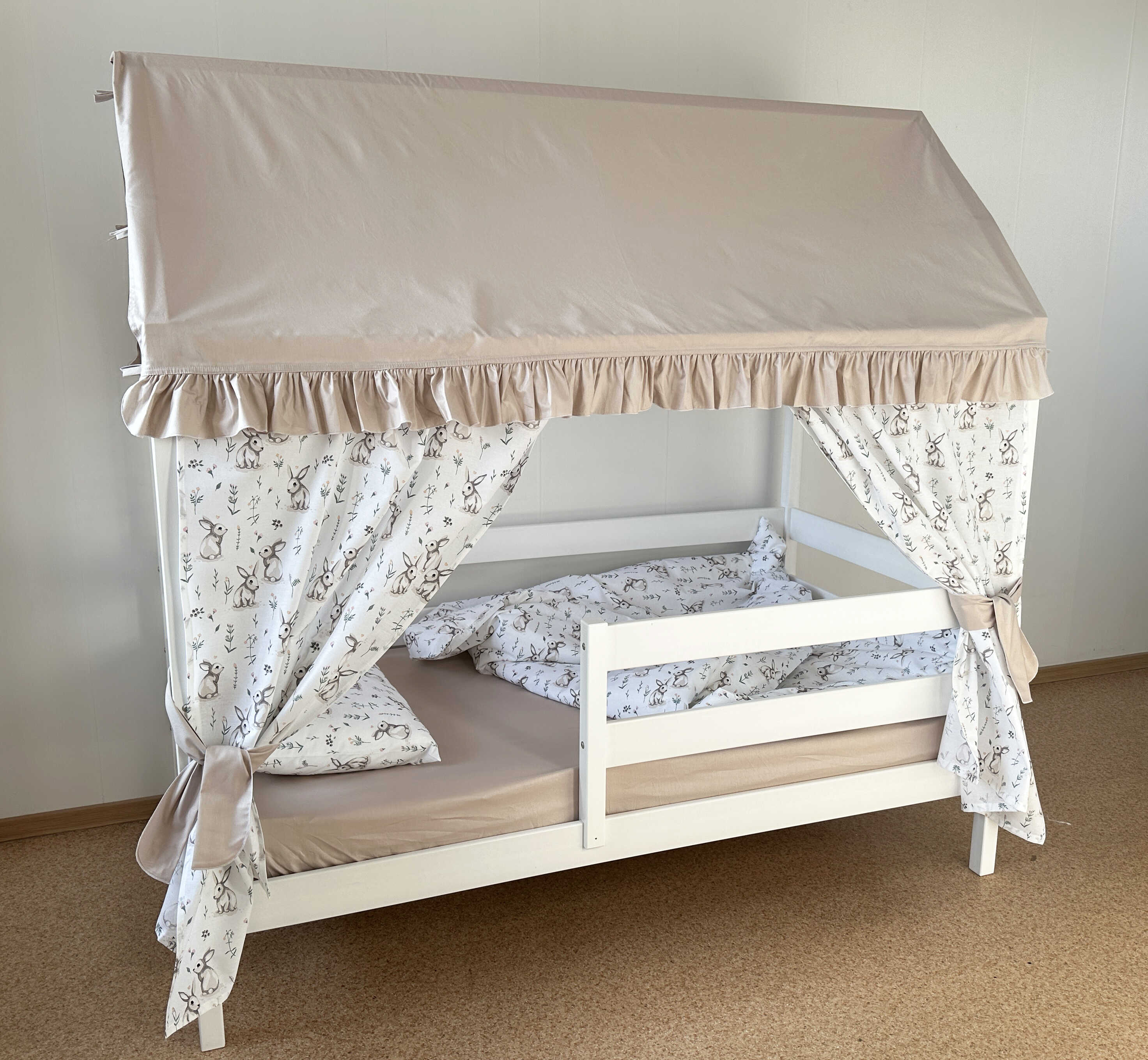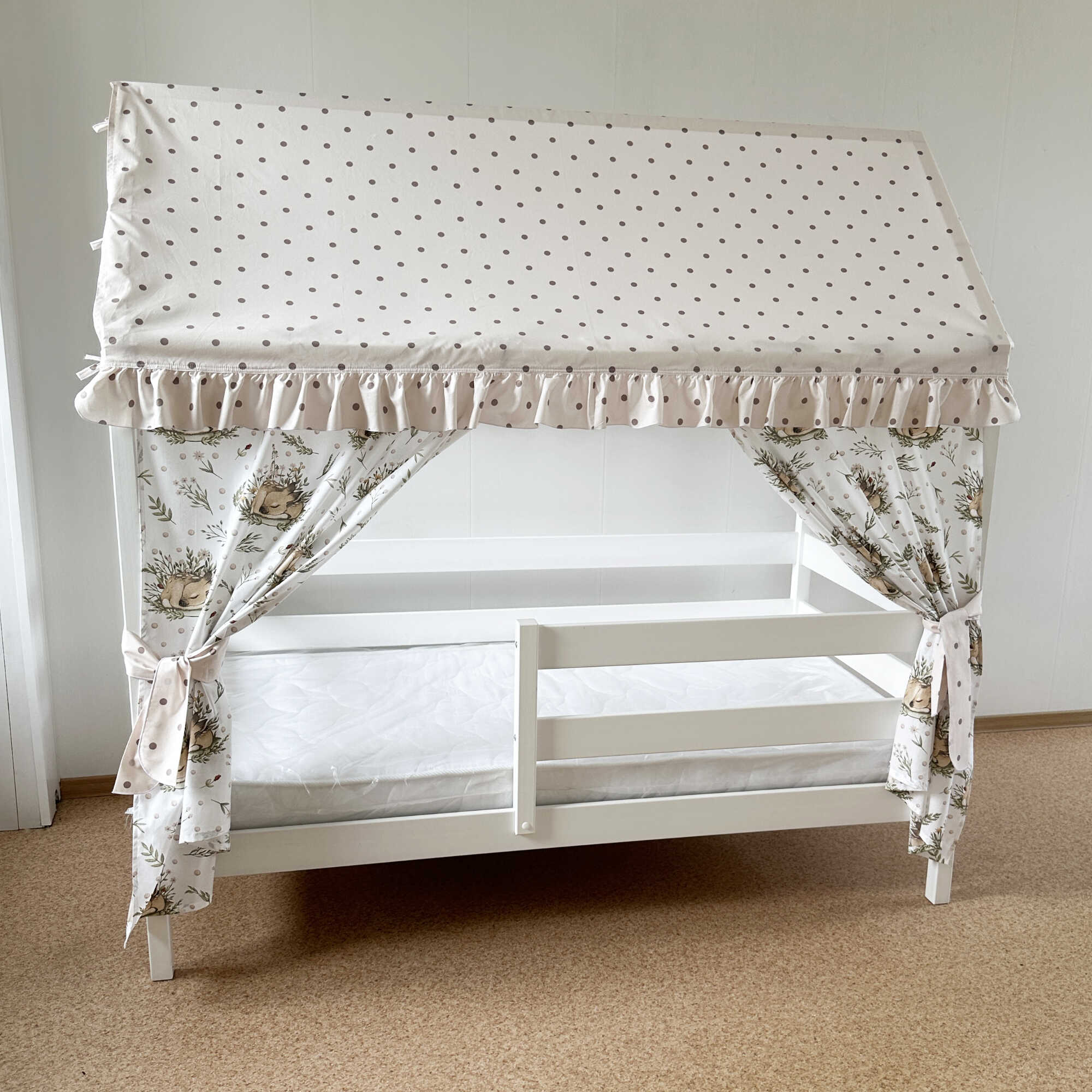 Ткань: 100% хлопок. Кроватка домик - это отличное функциональное решение, место и для сна, и д..