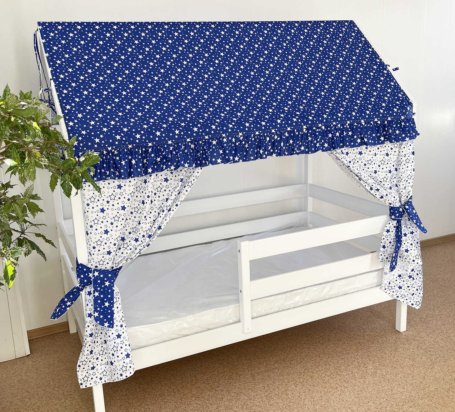 Крыша и шторы для кроватки домика ТД-5
