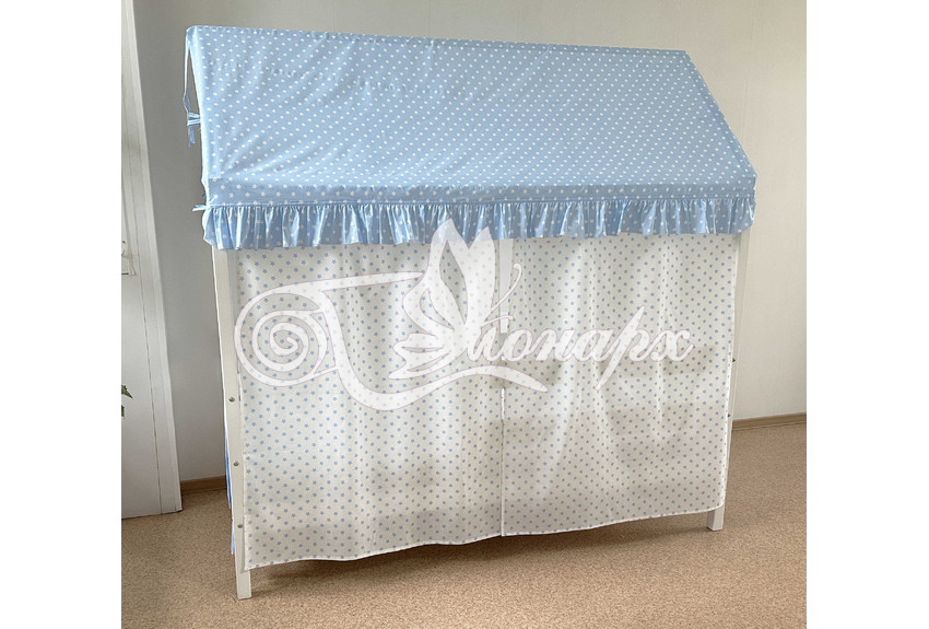 Крыша и шторы для кроватки домика ТД-15 купить в Томске.Теги: комплект в кроватку домик, текстиль для домика, крыша для домика