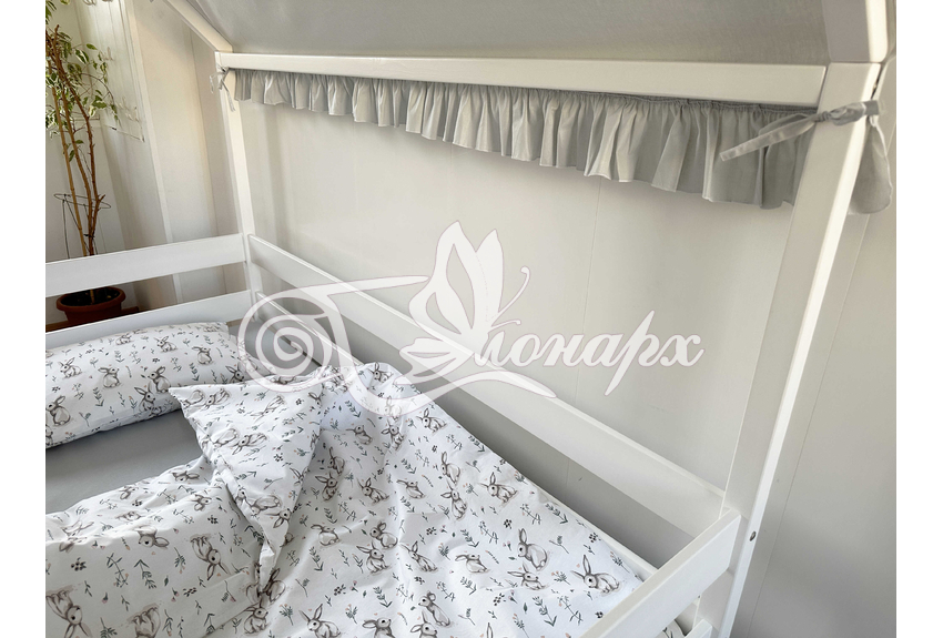 Крыша и шторы для кроватки домика ТД-27 купить в Томске.Теги: комплект в кроватку домик, текстиль для домика, крыша для домика