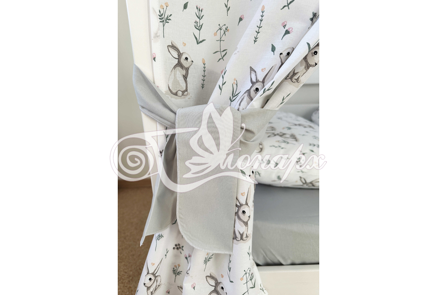 ширина - 82 см. - Занавески с завязками (по 4 завязки на каждой занавеске) на боковые стороны кроватки 2 шт.: