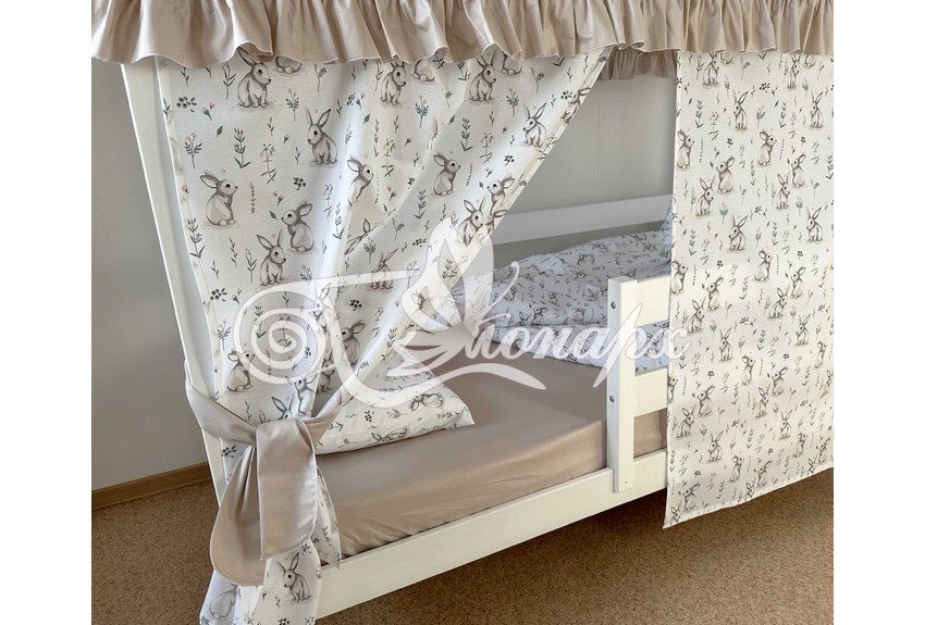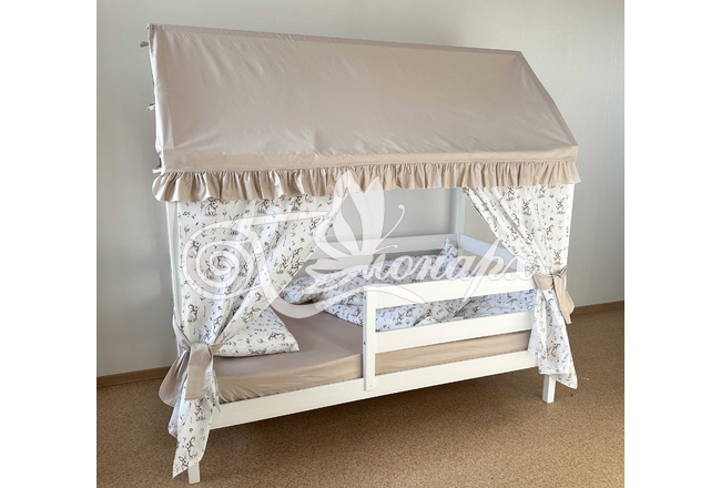 Крыша и шторы для кроватки домика ТД-28 купить в Томске.Теги: комплект в кроватку домик, текстиль для домика, крыша для домика