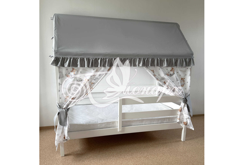- Крыша текстильная на завязках (10 завязок) для кроватки домика: