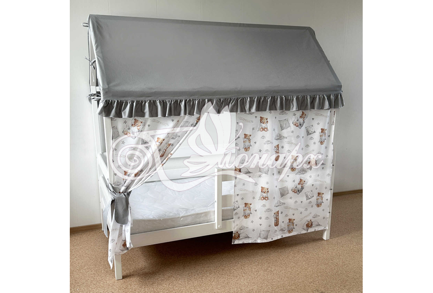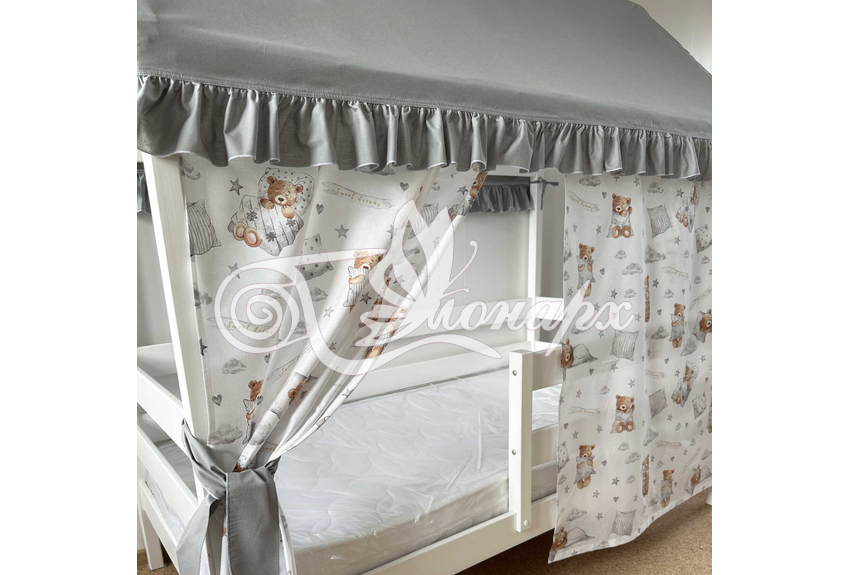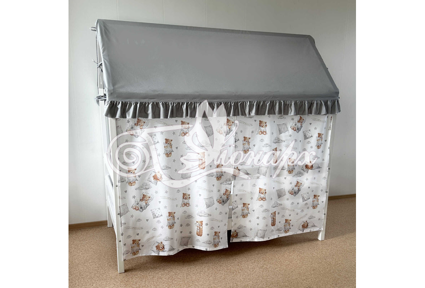 Крыша и шторы для кроватки домика ТД-49 купить в Томске.Теги: комплект в кроватку домик, текстиль для домика, крыша для домика
