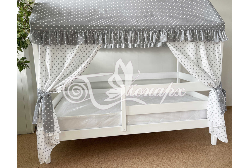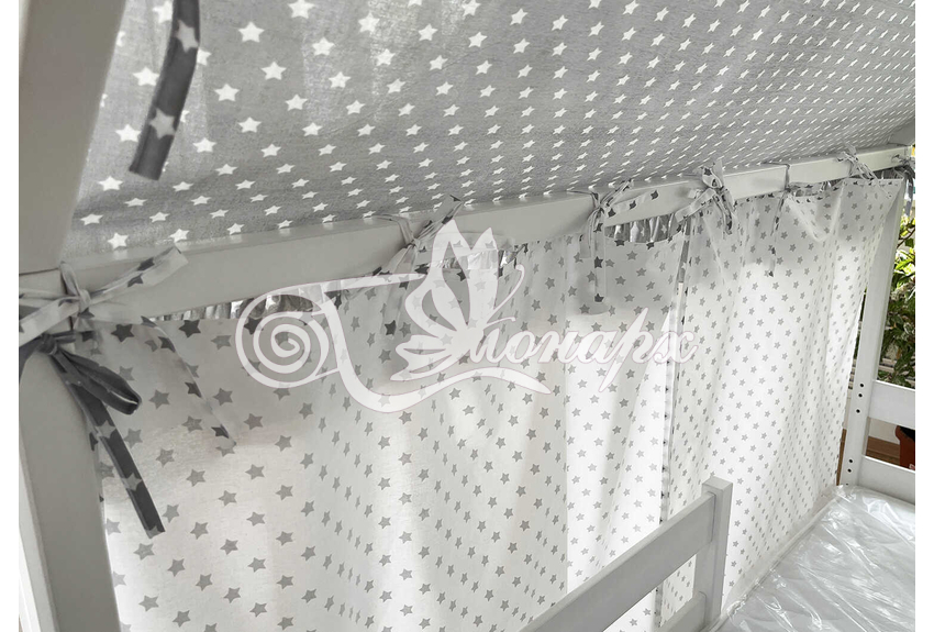 Крыша и шторы для кроватки домика ТД-5 купить в Томске.Теги: комплект в кроватку домик, текстиль для домика, крыша для домика