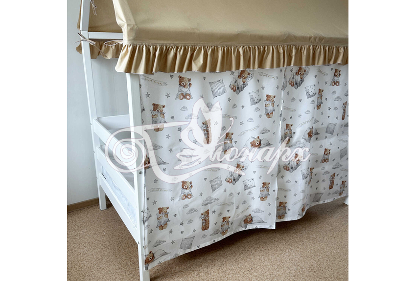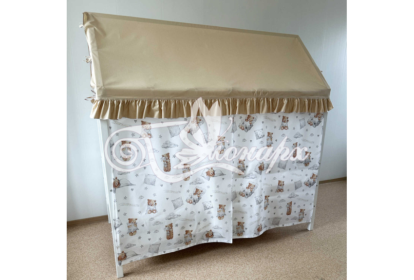 Крыша и шторы для кроватки домика ТД-51 купить в Томске.Теги: комплект в кроватку домик, текстиль для домика, крыша для домика