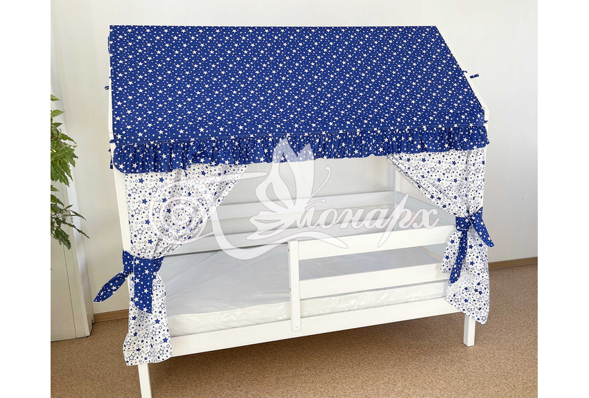 Крыша и шторы для кроватки домика ТД-9 купить в Томске.Теги: комплект в кроватку домик, текстиль для домика, крыша для домика